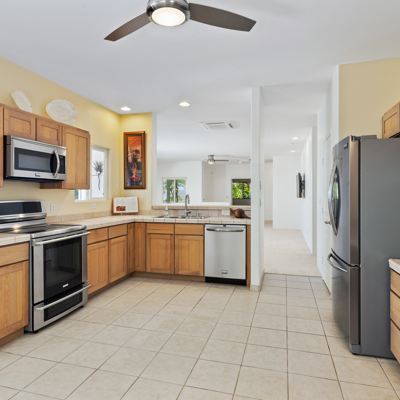 INTERIOR New air conditioning (Fujitsu) split zone with Ceiling Installation which uses unobtrusive recessed ceiling vents Master bath remodel (3/4" thick Peruvian Travertine) Entryway tile (Travertine) Office bedroom (hardwood) Guest bedroom (hardwood) New stainless steel appliances (refrigerator, dishwasher, range/oven, and microwave) Custom cordless blinds New Paint in most of the interior - Bistro White New ceiling fans Garage floor sealed and marine coated