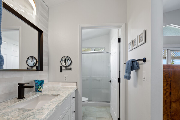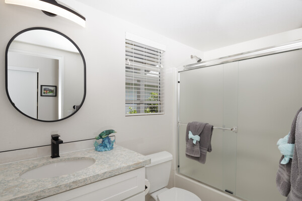 Upgraded Bathrooms - Quartz countertops, modern light fixtures, and trim