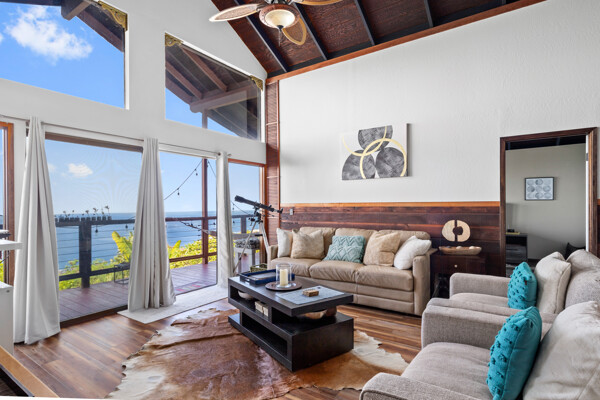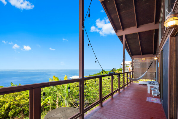Enjoy unobstructed panoramic ocean views from this enchanting redwood cedar home. This charming home boasts spacious kitchen and living room area with an open-concept design. The bedrooms are oversized with plenty of storage and views of the endless ocean to boot. Step out on the lanai and enjoy the ocean breezes and ample relaxing space to unwind from a busy day.