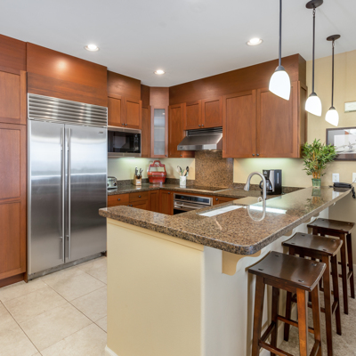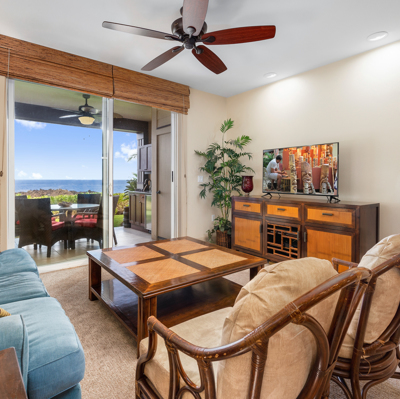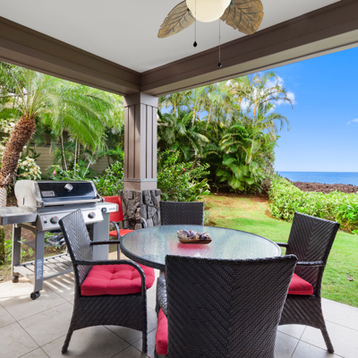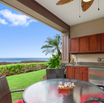 Open House 01/15/2020 till 1pm. Theres golf and ocean view and then theres OCEANFRONT and a world of difference in between. The moment you walk into our professionally designed, Hawaiian adorned Villa, you will unexpectedly look past the inviting furnishings and gaze upon the ocean. Irresistibly, you walk to the lanai, open the door, hear the waves crashing, smell the sea spray, perhaps glimpse a breaching whale and know you have chosen wisely. This corner unit is also the most convenient to the Ocean Club, yet it has one of the most private settings in the community. No one can walk around the building or in front of the lanai. How can that be? You have to see it to believe it. Three beautifully adorned bedrooms with the master looking directly to the ocean. Open the window and sleep to the magic of rhythmic waves washing the shoreline. A large kitchen, with granite countertops and high-end appliances such as Subzero refrigerator, Wolf stove & oven, and Bosch dishwasher and relaxing living area offers plenty of comfort for large families or friends, although the lanai and grass lawn is where you�ll probably spend most of your time. The home is furnished and decorated professionally, with accented walls and tropical decor. It has everything you need in a vacation home. The master bedroom offers a California king-size bed. A guest room offers a queen-size bed. Another guest room currently has two twin beds but the room is large enough to hold a queen sized bed. The lanai has a wet bar, BBQ and a dining area, which is a great spot to enjoy meals, views and the sea breeze. However, if you want even more space, walk next door to the clubhouse & restaurant. The Ocean Club at Hali�i Kai is known for its most amazing views of ocean, golf, Maui, year round sunsets and whales. The oceanfront amenity center offers swimming pool, spa, gym, restaurant, bar, BBQ and more. Pool towel services are convenient for owners and their guests.
