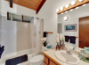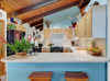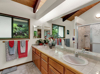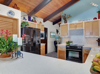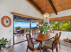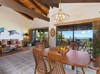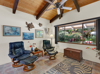 The interior has a relaxed island feel with ocean views from the kitchen, dining, living, and Master bedroom. The lanai is another great place to enjoy the view while dining. It is situated for mauka and makai breezes at an ideal elevation to keep it cool. It has soaring open beam ceilings, custom window treatments, a wood burning fireplace, and a separate TV room. Kitchen has been remodeled with quartz counters, custom glass tile backsplash, maple cabinets, Kenmore appliances and a glass top/convection JennAir stove. The flooring in the living room, kitchen, dining and TV room has a cool porcelain tile. The exterior has a two-layered roof and an attached enclosed 3 car garage with 2 more spots outside for vehicle parking.